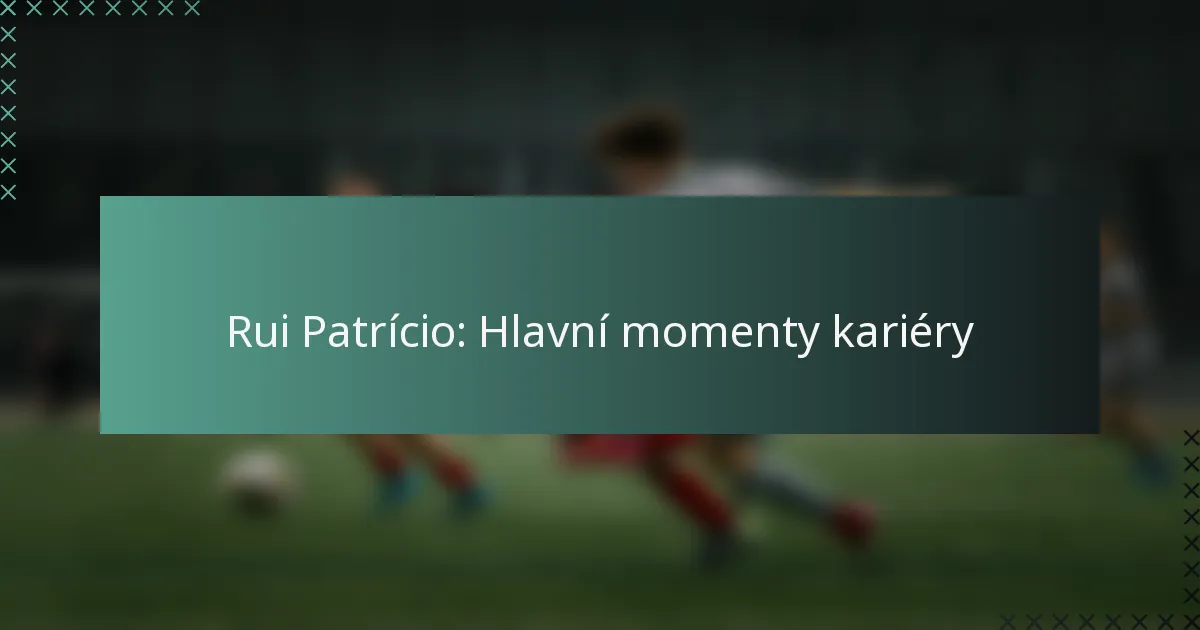 Rui Patrício se etabloval jako jeden z předních brankářů ve fotbale, jehož kariéra je poznamenána významnými klubovými a mezinárodními úspěchy. Jeho přínosy vedly nejen k řadě titulů a ocenění, ale také výrazně ovlivnily dynamiku a morálku týmu.